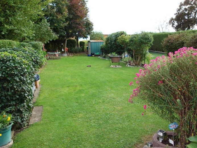 Nach dem Eingang kommt der Windfang, eine kleine Garderobe sowie das Gäste-WC. Vom Treppenhaus erreichen Sie weiteren Räume. Das Wohn-/ Esszimmer, sowie die Küche. Vom Wohnzimmer gelangen Sie auf die Terrasse und den gepflegten Garten.