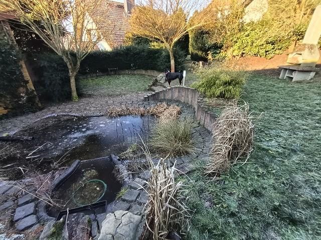 Beheizbares 24m2 massives Nebengebäude (Gästehaus, EG +Dachgeschoss), ca. 7 m2 Blockbohlen Hütte für Gartengeräte. Ein künstlicher Teich mit üppiger Vegetation schafft eine Oasen Atmosphäre. Verschiedene Plätze laden zum Ruhen oder Party ein. Im Garten gibt es Obstbäume und Beerensträucher