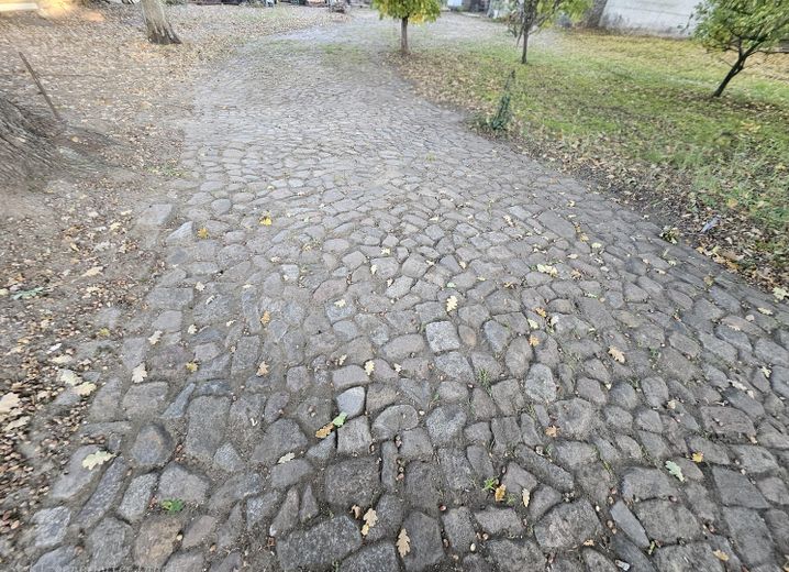 Als Teil eines alten Bauernhofs mit Fuhrunternehmen gibt es ein Kopfsteinpflaster Weg.