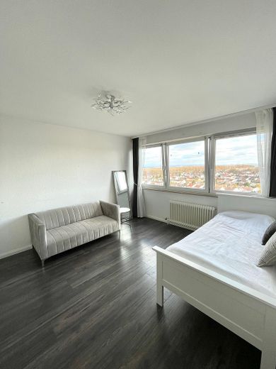 Diese attraktive 5-Zimmer-Wohnung im Wohngebiet Buch in Bietigheim-Bissingen liegt im 12. Obergeschoss und wird provisionsfrei und ohne Makler zum Verkauf angeboten. Sie ist derzeit noch vermietet – ideal nutzbar als Kapitalanlage oder für den zukünftigen Eigenbedarf. Der lichtdurchflutete Grundriss überzeugt neben drei Schlafzimmern mit zwei Balkonen, einer voll ausgestatteten Einbauküche, einem separaten Gäste‑WC, einem Vollbad, Handwaschbecken und Badschränken sowie einem geräumigen Abstellraum und einem separaten Kellerraum. Ein Stellplatz in der Tiefgarage kann zusätzlich für 15.000 € erworben werden.