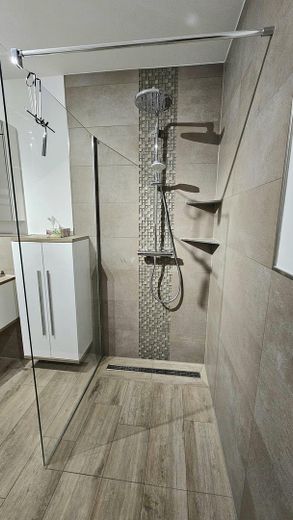 - Bad mit bodengleicher Dusche + Glaswand und Badewanne. Neue Badmöbel ( aus 2025).