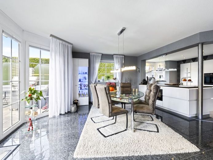 Organisieren Sie wunderbare Feiern oder entspannen Sie sich mit einem guten Buch auf der sonnigen Terrasse, die direkt in den großzügigen Garten übergeht. Das ca. 720 m² umfassende Grundstück bietet viel Platz für Kinder zum Spielen und Gärtnern. Die zwei Carports bieten genügend Platz für 3 Fahrzeuge.