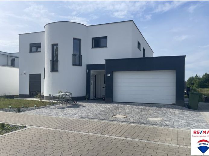 Dieses neuwertige und mit viel Liebe erbaute Einfamilienhaus mit Doppelgarage und zwei Stellplätzen verfügt über etwa 234 m² Wohnfläche, eine zusätzliche Nutzfläche von 63 m² und eine Grundstücksgröße von 517 m². Das KfW 40 Einfamilienhaus bringt zeitgemäßes Wohnen mit einer hochwertigen Ausstattung in Einklang. Die moderne Bauweise und die großzügigen Fensterflächen verleihen dem Haus einen eleganten Charakter.