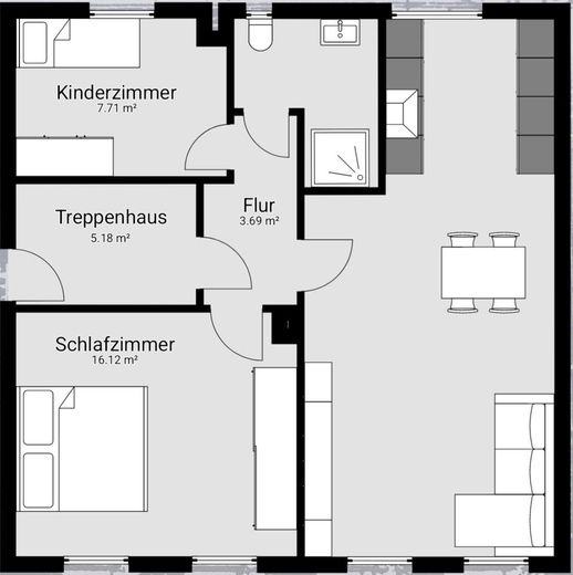 Beim Betreten der Wohnung empfängt Sie ein großzügiger Flur, der Sie in das offene und lichtdurchflutete Wohnzimmer führt. Die großen Fenster lassen viel Tageslicht in den Raum, der durch seine neutrale Farbgestaltung eine gemütliche Atmosphäre ausstrahlt.