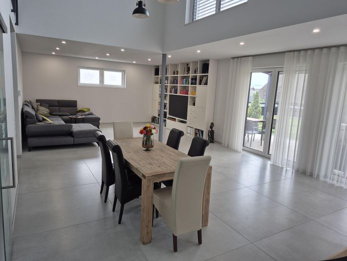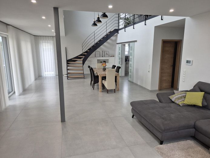 Entdecken Sie dieses 244 m² große Einfamilienhaus im eleganten Bauhausstil, das modernes Design mit Top-Technik vereint. Das Ende 2022 / Anfang 2023 massiv erbaute Haus bietet ein durchdachtes Wohnkonzept für die ganze Familie.