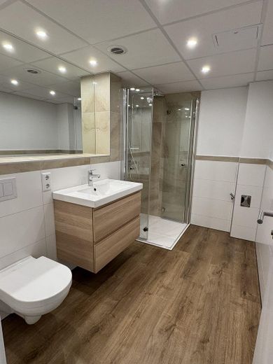 Die hochwertige Mietwohnung ist komfortabel geschnitten für junge Familien, anspruchsvolle Paare, Singles oder Business-Leute. Die Wohnung bieten jeder Generation einen attraktive Wohnkomfort. Einladend führt ein offener Flur direkt ins Herzstück des großzügigen Wohn-/Essbereich der offen gestaltet ist mit seinen großen Fensterfronten und bietet Zugang zu Balkon oder Terrasse mit Blick in den Schwarzwald. Das moderne geflieste Duschbad mit Waschmaschinenanschluss rundet die Wohneinheit ab. Alle Fenster sind mit elektrischen Rolläden versehen. Eine kontrollierte Lüftung und eine Fußbodenheizung sorgen für behagliches Raumklima.