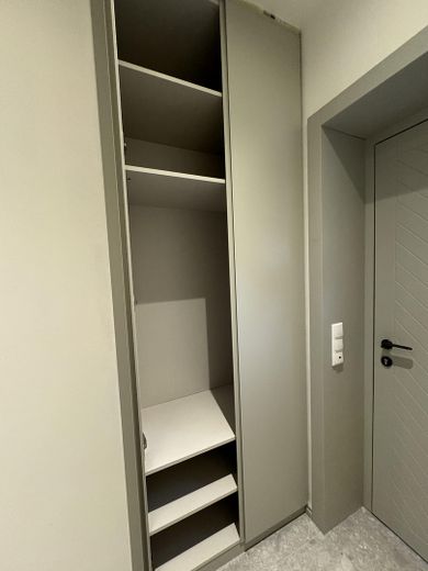 Die maßgefertigten Einbaumöbel, wie die stilvolle Garderobe und die exklusiven Badmöbel, schaffen nicht nur zusätzlichen Stauraum, sondern setzen auch ästhetische Akzente.