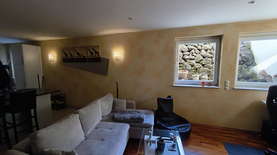 Die helle und geräumige 2-Zimmer-Wohnung befindet sich im Souterrain eines Dreiparteienhauses in Sankt Augustin – Niederpleis.