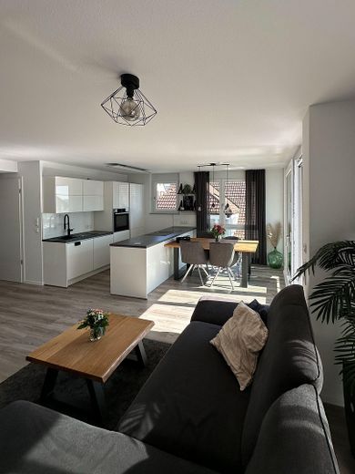 Unsere neuwertige, geschmackvolle und gut ausgestattete 3 Zimmer Wohnung befindet sich in einem sehr gepflegten und ruhigem 8 Parteien Mehrfamilienhaus in zentraler Lage von dem beliebten Örtchen Deckenpfronn.