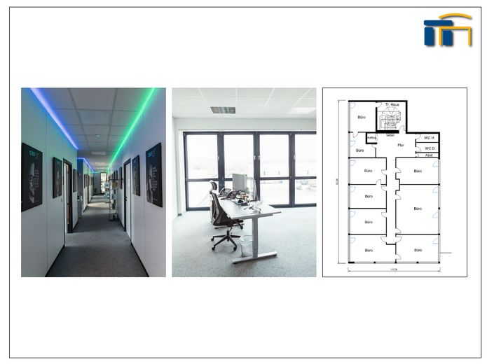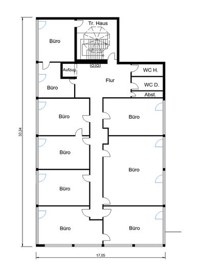 Die Fläche ist derzeit in 9 großzügige Büroräume aufgeteilt. Eine Änderung des Grundrisses ist grundsätzlich möglich.