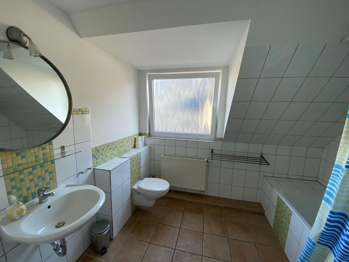 Die Wohnung erstreckt sich über 1. OG und Dachgeschoss und verfügt über einen gut durchdachten Grundriss. Besonders hervorzuheben der großzügige Balkon mit ca. 5 m², der zum Entspannen im Freien einlädt.