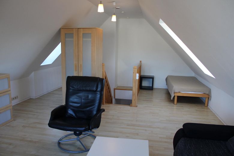 Im Dachgeschoss befindet sich ein großes Wohnzimmer mit 2 Einzelbetten.