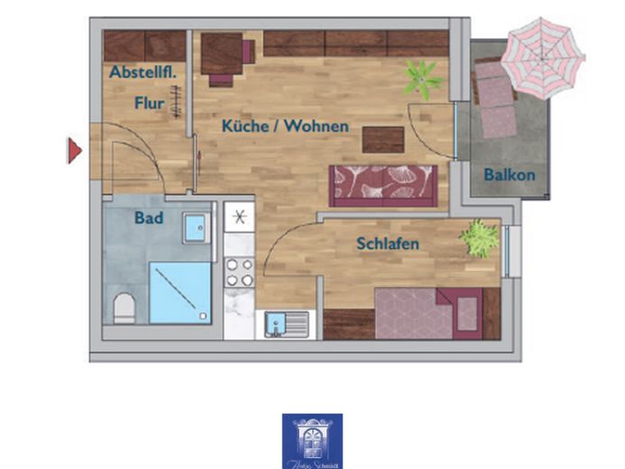 Vermietet wird eine perfekte 2-Zimmerwohnung liegt im 1. Obergeschoss. Im hellen großzügigen Wohnbereich ist die offene Küche mit moderner EBK integriert. Für Entspannung und Wohlbefinden sorgt der gemütliche Balkon. Hier können Sie gemütliche Stunden mit Freunden oder der Familie verbringen. Das Schlafzimmer verfügt über einen optimalen Zuschnitt. Das moderne Tageslichtbad mit einer ebenerdiger Dusche und einem Handtuchheizkörper ist exklusiv ausgestattet. Der Anschluss für Ihre Waschmaschine sowie ein zusätzlicher Abstellraum zur Wohnung befinden sich im Treppenhaus.