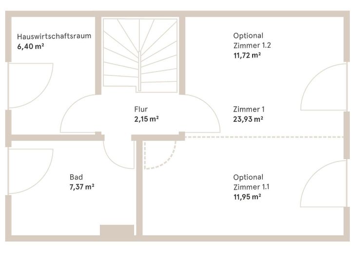 - Dachgeschoss: Schlafzimmer, begehbarer Kleiderschrank, Abstellraum, Badezimmer II (mit Badewanne & Waschmaschinenanschluss)