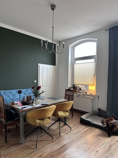 Wohnen, wo Geschichte auf modernen Komfort trifft: Diese außergewöhnliche Dachterrassenwohnung in einer prachtvollen Jugendstilvilla von 1905 vereint den Charme der Gründerzeit mit einer 2021 aufwendig modernisierten Innenausstattung. Hoch aufragende Räume mit eleganten Rundbögen, originale Stuckelemente und weiß lackierte Kassettüren erzählen die Geschichte des Hauses – zeitlos schön und gleichzeitig absolut zeitgemäß.