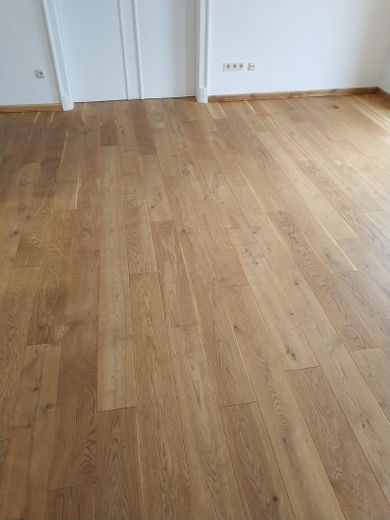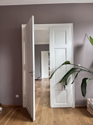 Auf 160 m² verteilen sich sechs großzügige Zimmer, verbunden durch einen einladenden, lichten Flur. Wärme und Noblesse verleihen die durchgehenden Massivholzdielen aus geölter Eiche, die in jedem Raum das Licht auf besondere Weise einfangen. Zwei vollwertige Bäder sorgen für Komfort im Alltag.