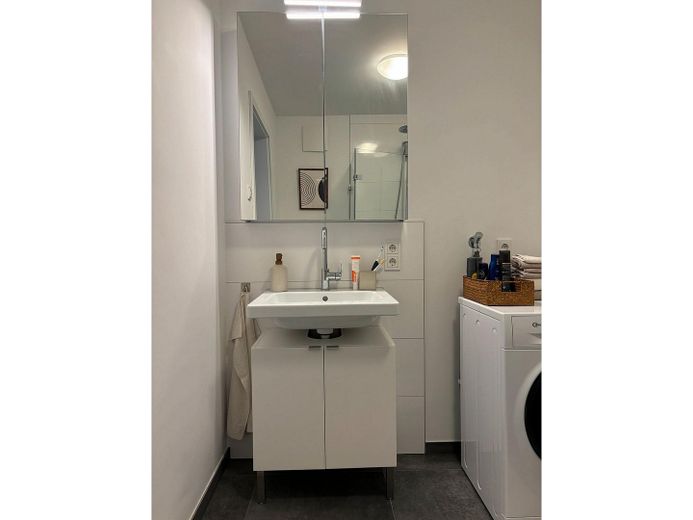 Zu der Wohnung gehört ein Tiefgaragenstellplatz und ein kleines Kellerabteil.