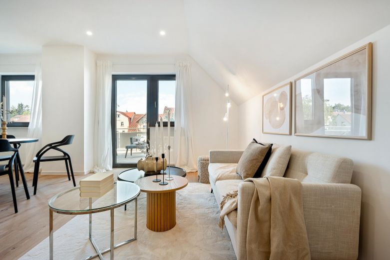 •Großzügiger Wohn-/Essbereich mit Zugang zu einem ca. 20 m² großen Dachterrasse – perfekt zum Entspannen und Genießen - hochwertiges Eiche Vinyl mit Blauen Engel Siegel, der eine gute Wahl für alle darstellt, die Wert auf ein gesundes Wohnklima und eine umweltfreundliche Einrichtung legen.