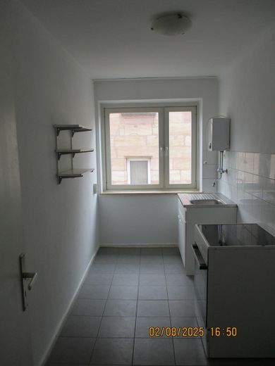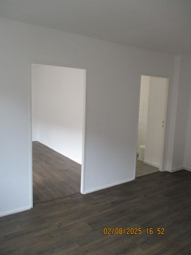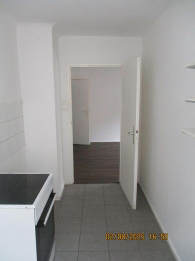 Zimmer und Flur nit PVC Boden, Küchenboden gefliest. In der Küche zusätzlich Fliesenspiegel längs vom Herd bis zur Spüle.