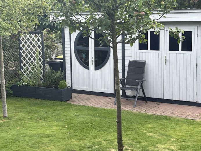 Das Herzstück des Außenbereiches ist der sehr gepflegte Garten mit separatem Gartenhaus, integrierter automatischer Bewässerungsanlage und praktischem Mähroboter. Eine großzügige Terrasse (24 m2)lädt zum Entspannen und geselligem Beisammensein ein.