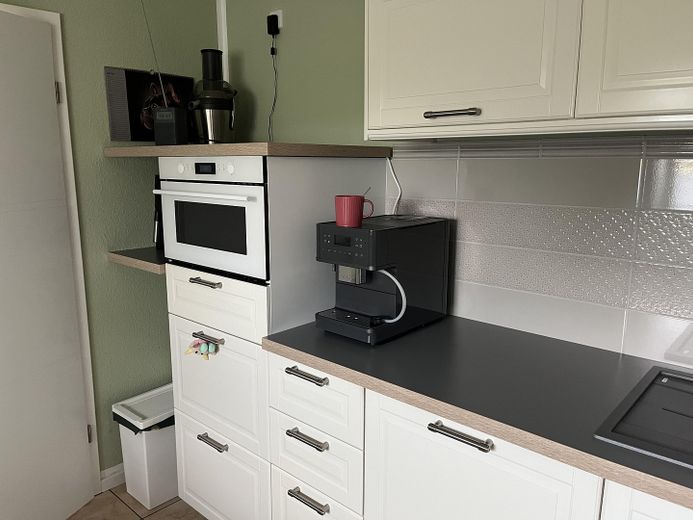 Beheizt wird mit einer modernen Gas-Brennwerttherme installiert im Dezember 2023. Der Warmwasserspeicher ist für Solarthermie vorbereitet. (Umrüstung auf solare Brauchwarmwasserbereitung möglich und KfW förderfähig).
