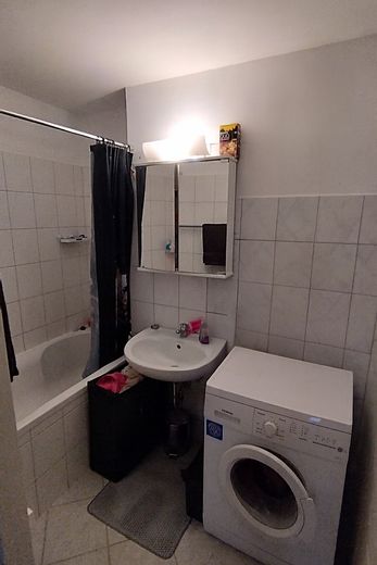 Die Wohnung ist mit Laminat in Wohn- und Schlafzimmer, sowie mit Fliesen in Küche/Bad/Flur und WC ausgestattet. In WC und Bad sind elektrische Entlüfter installiert. Im Keller ist ein Abteil fest zugeordnet. Hier gibt es ebenfalls einen Wäscheraum, als auch Fahrradkeller. Die großräumigen Grünflächen rund um das Haus (Eigentum der Bewohner) können genutzt werden. Ebenfalls der enthaltene Grillplatz. Der Pkw Stellplatz ist fest der Wohnung zugeordnet und nummeriert. Mit dem Aufzug kann man alle Stockwerke erreichen.
