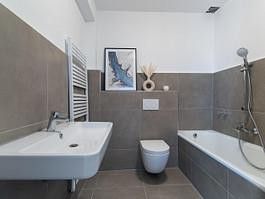 In den oberen Geschossen stehen – je nach Nutzungskonzept – bis zu fünf Schlafzimmer zur Verfügung. Alternativ lässt sich eines der Zimmer hervorragend als Arbeits- oder Büroraum nutzen. Damit eignet sich das Haus gleichermaßen für Familien mit Platzbedarf wie auch für modernes Arbeiten von zu Hause. Das Badezimmer ist hochwertig ausgestattet und verfügt sowohl über eine Badewanne als auch über eine separate Dusche. Zusätzlich bietet ein großzügiger Balkon einen weiteren privaten Außenbereich.