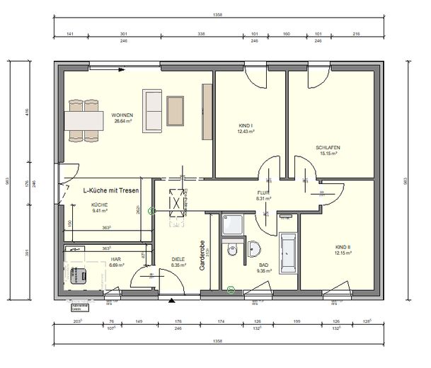 Dieser hochwertig gebaute Bungalow (Fertigstellung 2024) in Münchhausen bei Finsterwalde bietet Ihnen modernes, komfortables Wohnen mit viel Platz und einem großzügigen Grundstück.