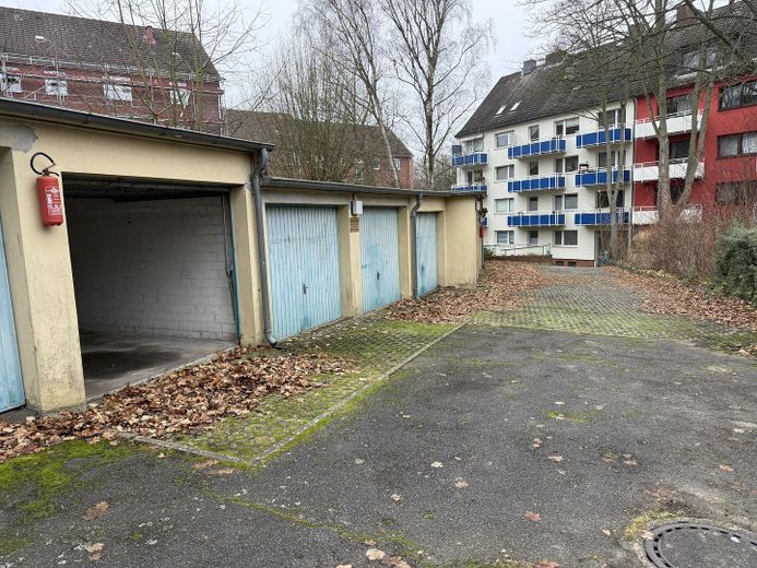 Von der Straße aus kommt man durch ein abgeschlossenes Hoftor zur Garagenzeile. Hier ist eine Garage verfügbar. Sie erhalten zwei Schlüssel zum Hoftor und zwei Schlüssel zur Garage.