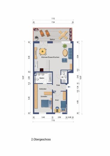 * herrlich großer Balkon (2. Wohnzimmer) mit knapp 7,5 x 4 m
