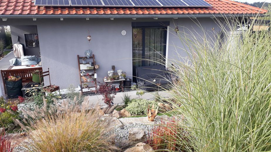 Mein Bungalow hat eine halbrunde Wand die dem Haus etwas ganz Besonderes gibt.