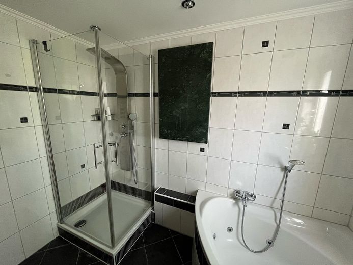 Wohnfläche 106 qm und 3 qm Balkon, Bad mit Whirlpoolwanne, seperates WC, Einbauküche, Einbauschrank im Schlafzimmer, 2 Abstellkammern, Kellerabteil, Garage und Gartenmitbenutzung.