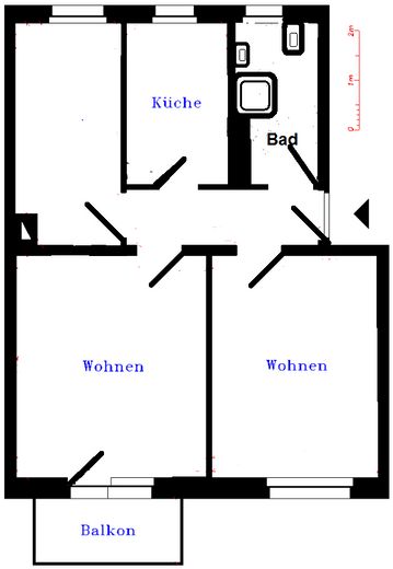 - Warmwasser durch ein Gas-Durchlauferhitzer in der Wohnung / Küche