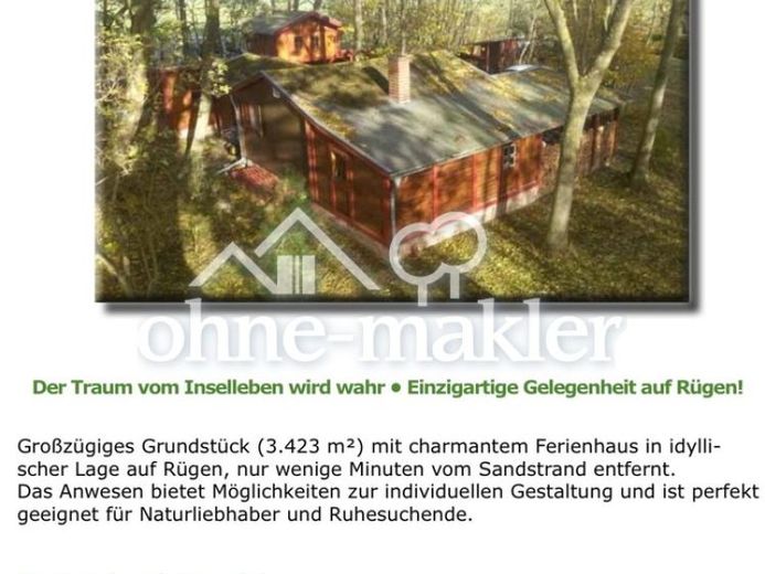 Großzügiges Grundstück (3.423 m², davon 500 m2 Bauland) mit charmantem Ferienhaus in idyllischer Lage auf Rügen, nur wenige Minuten vom Sandstrand entfernt.