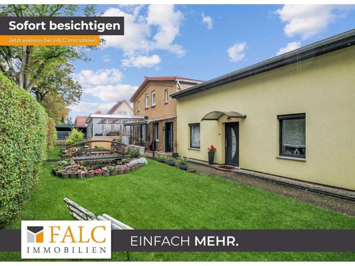 Die Außenanlagen bieten zusätzlichen Komfort: Zwei Garagen und eine große Parkfläche auf dem Hof sorgen für ausreichend Stellplätze. Ein kleiner Garten vor dem Haus und ein großer Garten hinter dem Haus laden zum Verweilen im Freien ein. Die Terrasse, das Wirtschaftsgebäude und das Gewächshaus bieten vielfältige Nutzungsmöglichkeiten.