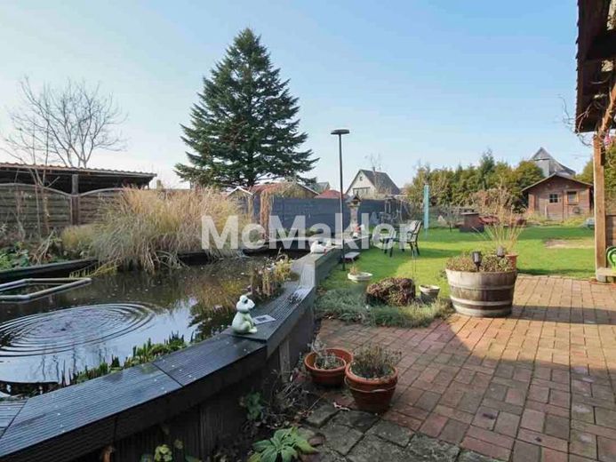 Das ca. 890 m² große Grundstück bietet viel Raum für Erholung im Freien. Der Garten mit Teich ist übersichtlich angelegt und lädt zu entspannten Stunden, Spiel und geselligem Beisammensein ein – bei gleichzeitig überschaubarem Pflegeaufwand.