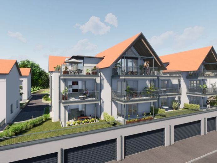 Willkommen in Ihrer neuen 3-Zimmer-Wohnung im 1. Obergeschoss – ein Zuhause, das höchsten Wohnkomfort bietet. Diese moderne Neubauwohnung beeindruckt durch durchdachte Architektur und hochwertige Ausstattung. Die Süd-Ausrichtung sorgt für viel Sonnenlicht im großzügigen Wohn- und Essbereich, der durch bodentiefe Fenster ein helles, einladendes Ambiente erhält. Der sonnige Balkon erweitert den Wohnraum nach außen und bietet einen perfekten Ort zum Entspannen.