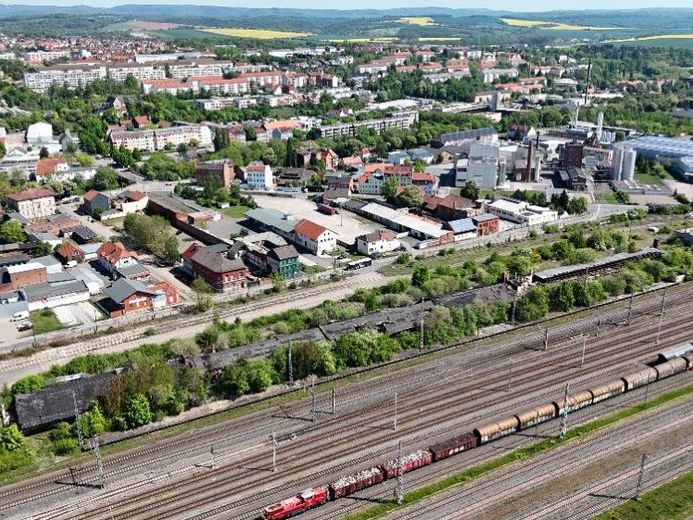 Das großzügige Grundstück liegt in einem Gewerbegebiet, das an die Bahnstrecke angrenzt und wurde bisher für die Lagerhaltung genutzt.