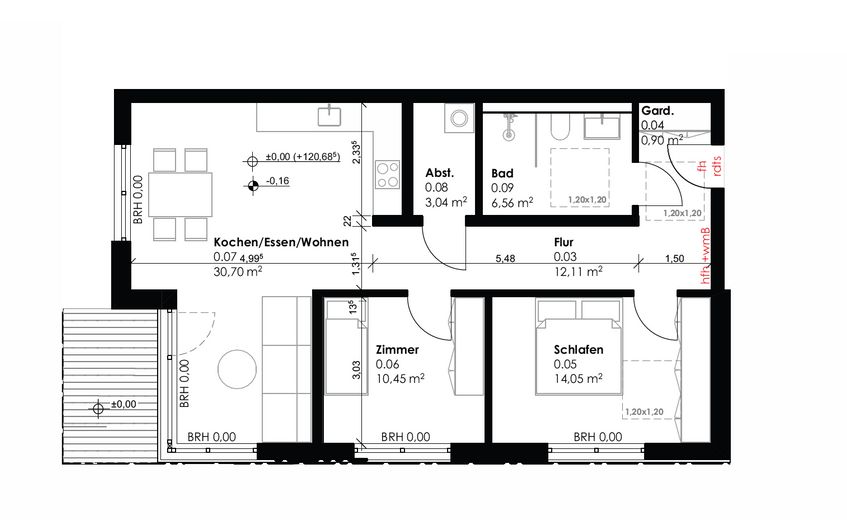 Auch die Fliesenbeläge in den Nassräumen, Diele, Küche und Wohnzimmer, sowie Parkett in den Schlafzimmern sind bereits im Angebot inkludiert. Alle Wandflächen sind vollflächig gespachtelt.
