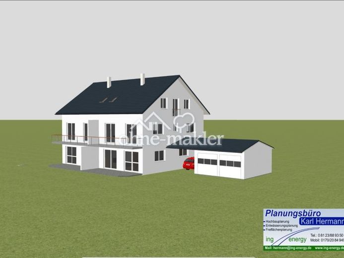 Auf dem Grundstück kann sowohl ein klassisches Einfamilienhaus oder alternativ auch ein Zweifamilienhaus mit zwei abgeschlossenen Wohnungen entstehen als auch – wie in der bereits vorliegenden Planung dargestellt – zwei Doppelhaushälften im Haus-im-Haus-System. Die Umsetzung ist dabei flexibel sowohl mit als auch ohne Keller möglich. Grundlage ist der rechtskräftige Bebauungsplan „Westlich Waldstraße“, der das Grundstück von einer landwirtschaftlichen Fläche zu bebaubarem Bauland entwickelt hat und klare Rahmenbedingungen für die Bebauung vorgibt.