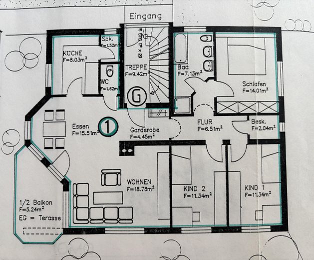 Balkon mit Zugang zum eingezäunten Garten (Sondernutzung)