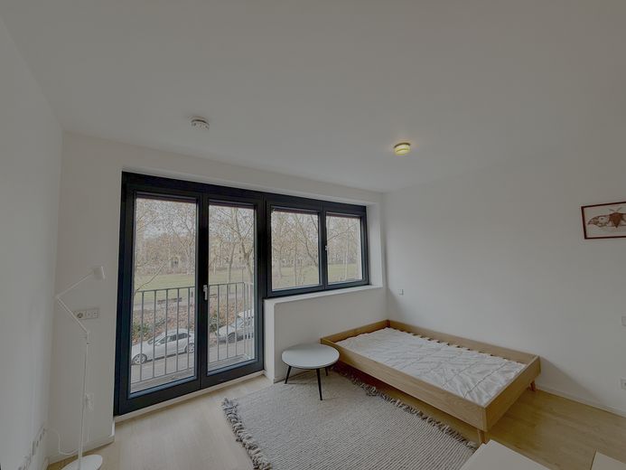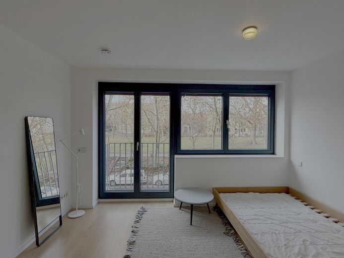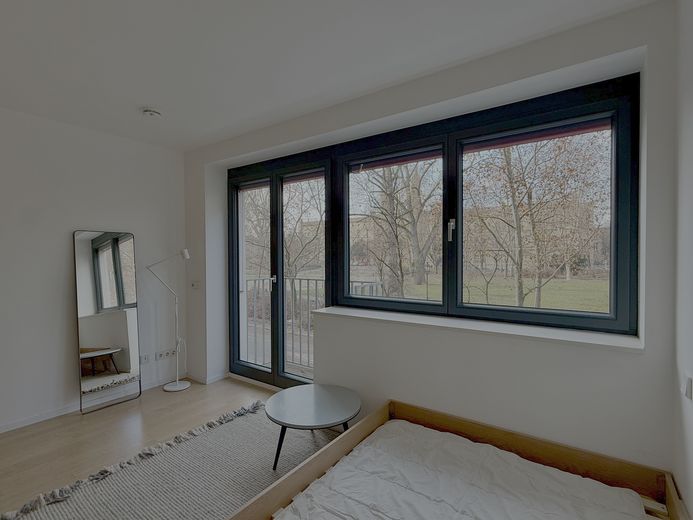 Direkt am Mariannenplatz, gegenüber dem Park und dem Kunst- und Kulturzentrum St. Bethanien. Cafés, Galerien und die Markthalle Neun sind fußläufig erreichbar.
