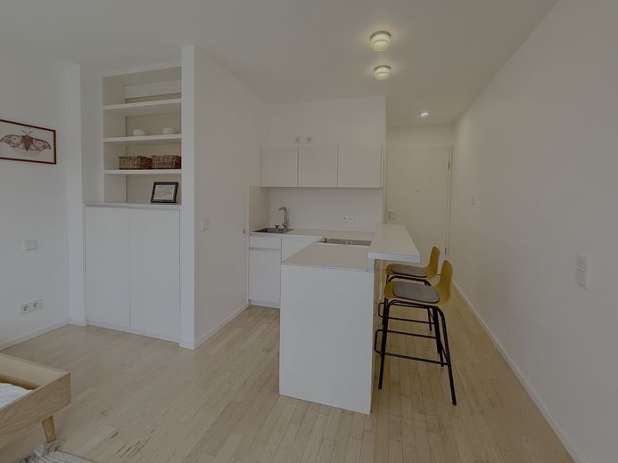 Helles und freundlich gestaltetes 1-Zimmer-Microapartment (ca. 26 m²) im 1. Stock eines gepflegten Gebäudes mit Aufzug. Die Wohnung ist teilmöbliert und verfügt über einen sonnigen Balkon mit unverbaubarem Blick auf den Mariannenplatz und St. Bethanien.