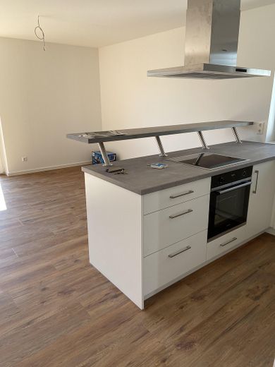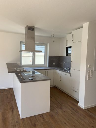 Bei dieser ansprechenden Neubauwohnung eines neu gebauten 4-Familienhauses handelt es sich um einen Erstbezug. Die Wohnung zeichnet sich durch eine gehobene Innenausstattung u.a. Fußbodenheizung, 3-fach verglasten Fenstern, elektrischen Rollläden+ Jalousien und Videosprechanlage etc. aus und kann zum 01.02.2026 bezogen werden. Die Wohnung wird durch einen durchdachten Grundriss charakterisiert, das Herzstück dieser Wohnung ist ein geräumiger Wohn-/Essbereich mit angrenzendem Küchenbereich. Neben 3 einladenden Zimmern (inkl. Studio) gibt es in der Wohnung auch ein schickes Badezimmer mit Walk-In-Dusche und Badewanne und hochwertiger Ausstattung. Der Balkon lädt zum Entspannen und Sonne tanken ein. Ein Garagenstellplatz für Ihr Auto (70.- EUR) und ein großzügiger Kellerraum stehen Ihnen außerdem zur Verfügung. Eine hochwertige neue Einbauküche wird als Maßanfertigung zur Verfügung gestellt (mtl. 50.- EUR). Die Mindestlaufzeit des Mietvertrages beträgt 2 Jahre.