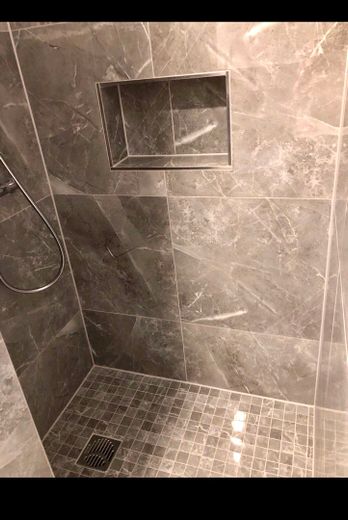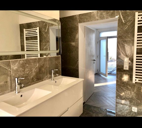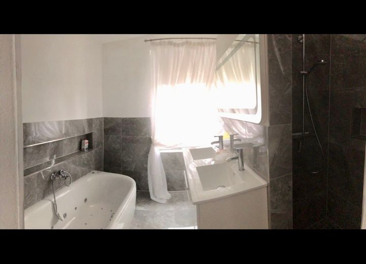 • hochwertiges Bad mit Whirlpool, ebenerdiger Dusche, Doppelwaschtisch, Handtuchheizkörper und randlosem WC