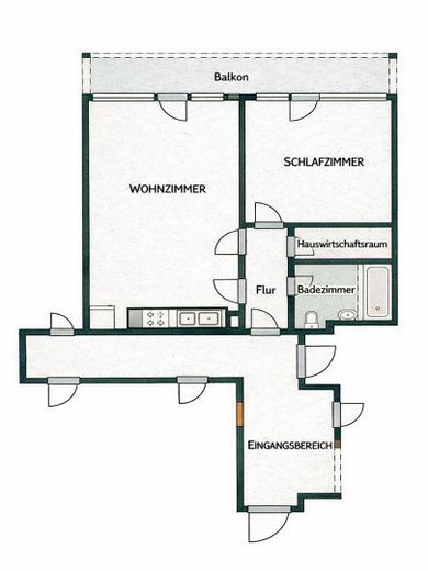 Die Wohnung ist möbliert. Die offene Küche geht fließend in den Wohn‑/Essbereich über und ist mit allen wichtigen Geräten ausgestattet (z.B. Herd, Backofen, Kühlschrank, ggf. Geschirrspüler). Vom Wohnbereich aus gelangen Sie auf den Balkon, der zum Entspannen einlädt.