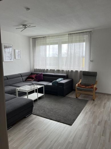 Die Hausfassade ist gedämmt. Doppelverglaste Kunstofffenster mit Rollläden, modern geflieste Küche, Südbalkon mit Markise, Eiche-Grau Laminatfussböden, Gaszentralheizung. Die Wohnung ist momentan an nette Familie sied über 8 Jahren vermietet jedoch zum 01.05.2026 wird die Wohnung frei. Hunde im Haus sind leider nicht erlaubt.