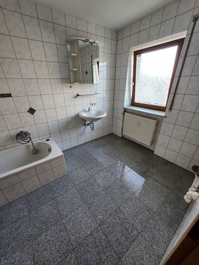 Schönes Bad mit Badewanne, Dusche und Waschmaschinenanschluß.