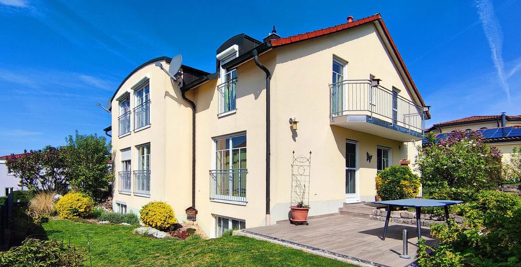 Diese gepflegte Doppelhaushälfte mit viel Platz für eine Familie wurde im Jahr 2002 in Massivbauweise mit hochwertiger Ausstattung auf einem Grundstück mit 337 m² errichtet (davon 15 m² anrechenbare Gemeinschaftsfläche). Das Haus mit schönem Garten und Terrasse befindet sich auf der straßenabgewandten Seite.