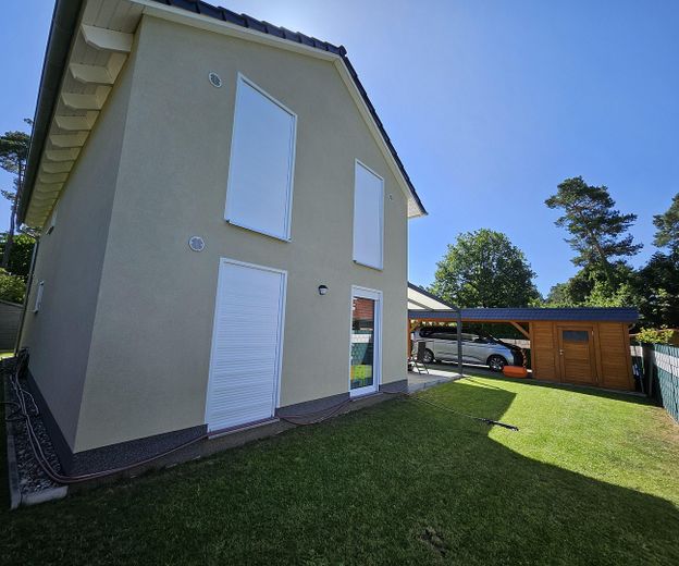 Erfüllen Sie Ihrer Familie und sich den Traum von den eigenen 4 Wänden mit unserer im August 2020 fertiggestellten neuerbauten Immobilie in einer ruhig gelegenen Seitenstraße in Wandlitz OT Basdorf. Das Haus mit 125 m² lässt keine Wünsche offen und bietet viel Platz um die Ruhe in Ihrem neuen idyllischen Haus zu genießen. Im Erdgeschoss verfügen Sie über ein großes Wohnzimmer mit 24,89 m² sowie einer Küche mit 8,50 m². Ebenfalls gehört zum EG ein Essbereich mit 10,31 m². Das gefließte Gäste-WC mit 2,75 m² darf natürlich nicht fehlen. Der Hausanschlussraum mit einer Vaillant Gas-Brennwertherme, allen elektrischen Anschlüssen und einem Außenwasserhahn hat eine Größe von 6,59 m² Im Obergeschoss gelangen Sie zuerst in die große Galerie mit 18,62m². Von dort abgehend kommen Sie in ein Schlafzimmer mit 11,91 m². Auch Ihre Kinder werden sich wohlfühlen in Ihrem neuen Zuhause, denn mit 2 weiteren Zimmern im OG jeweils mit 12,08 m² bleibt der Wunsch nach großen Kinderzimmern nicht unerfüllt. Das hochwertige modern gefließte Bad mit Waschbecken, WC, bodengleicher Dusche (90x90 cm) und Badewanne trägt zu einem modernen Wohnerlebnis bei.